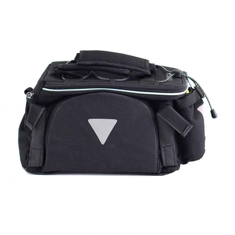 A medium-sized bag for every level of cyclist. Rigid construction with fleece lining and dividers for carrying a camera. Two expandable side pockets for more carrying capacity. Ideal for commuting or short rides.