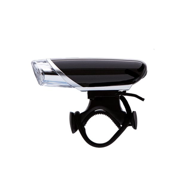 The LUXO front light (I‑112P) uses 2× AA batteries and features 3 bright white LEDs with an advanced reflector for improved beam quality. It provides excellent visibility during early morning rides and after dark. The extended side‑lens design increases lateral visibility, improving safety in urban traffic. The flexible silicone strap allows quick, tool‑free mounting on handlebars.